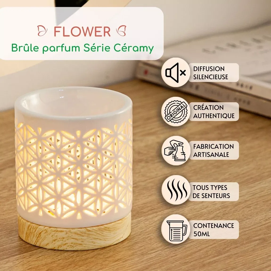 Apportez une touche chaleureuse et naturelle à votre intérieur avec notre brûle parfum en céramique Flower 🌿